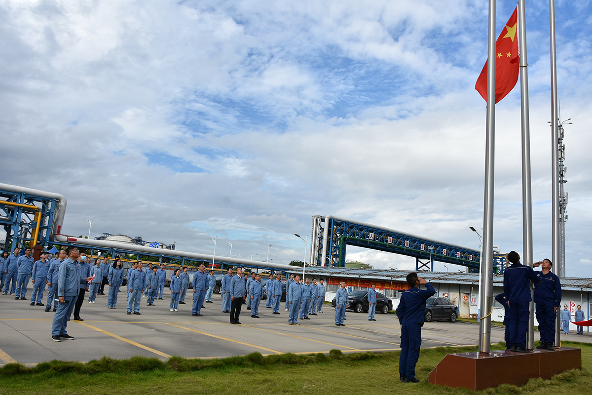 鮮艷的五星紅旗在雄壯的國歌聲中緩緩升起,迎風飄揚。全體黨員飽含深情地面向國旗,齊唱國歌,濃濃的愛黨愛國情懷油然而生。