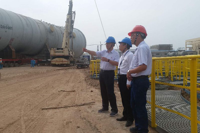 會前,陳樹武副書記一行深入到工程建設現場工地,了解項目建設進度、安全生產情況,并對一線生產員工表示關心和慰問。