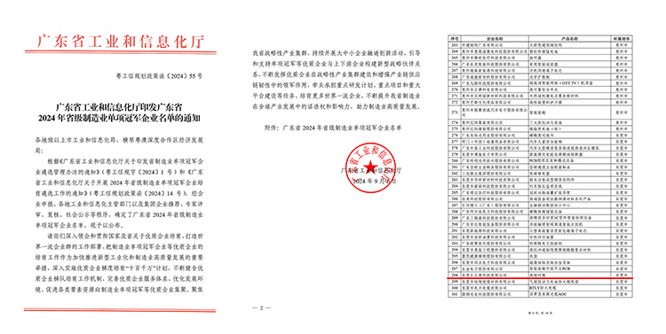 近日,廣東省工業和信息化廳印發廣東省2024年省級制造業單項冠軍企業名單。巨正源下屬科技公司憑借領先的技術創新能力、強大的綜合實力和卓越的產品質量,尤其是自主研發的“高熔纖維”產品極具技術先進性、質量可靠性和產業帶動性等優勢,成功獲得“廣東省級制造業單項冠軍企業”稱號。