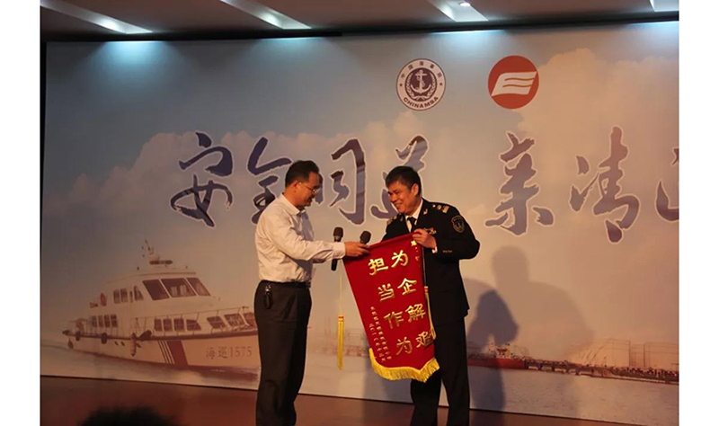 巨正源公司和東莞沙田海事處以黨建共建搭橋,充分發揮海事部門“紅色引領、藍色服務”作用,在巨正源大件設備運輸、鴻源碼頭液態烴改建工程以及碼頭推行“三制管理”等方面取得了一定的成果。為了表達對東莞海事局、沙田海事處誠摯的謝意和鑒證一份親清正德的政商關系,曾一平董事長代表公司向沙田海事處贈送了“為企解難 擔當作為”的錦旗,并表示將努力提升黨建共建工作的成效,進一步促進企業的安全發展、和諧發展。