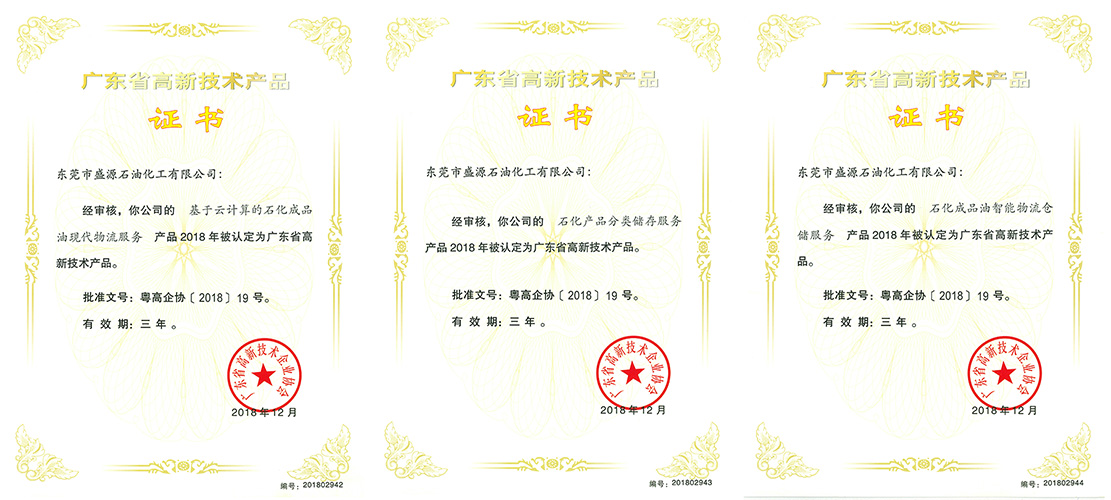 科技引領(lǐng)發(fā)展,創(chuàng)新煥發(fā)活力。繼通過國家高新技術(shù)企業(yè)認(rèn)定后,近日,巨正源旗下盛源公司又迎來新的捷報,自主研發(fā)的基于云計算的石化成品油現(xiàn)代物流服務(wù)、石化產(chǎn)品分類儲存服務(wù)、石化成品油智能物流倉儲服務(wù)等三類產(chǎn)品被認(rèn)定為2018年“廣東省高新技術(shù)產(chǎn)品”。