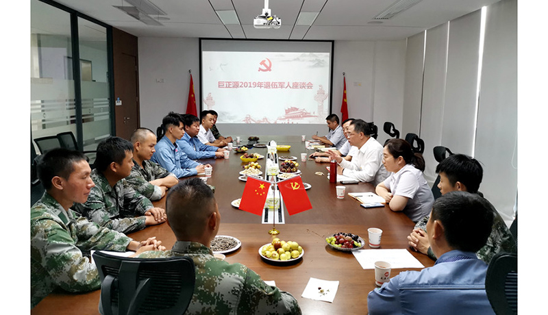 曾一平同志與大家一起共同學習了《習近平關于“不忘初心、牢記使命”重要論述選編》——人民軍隊必須永志不忘的紅色血脈,必須牢記全心全意為人民服務的根本宗旨,代表公司領導班子向退伍軍人們致以誠摯的問候和衷心的祝福,對他們關心和支持巨正源建設表示感謝。曾一平董事長希望大家退伍不褪色,繼續發揚人民軍隊吃苦耐勞、作風嚴謹、服從命令的光榮傳統,不忘初心、牢記使命,為巨正源的高質量發展貢獻力量