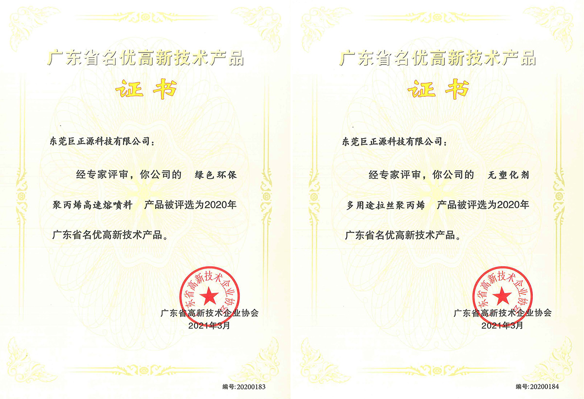 近日,巨正源科技公司自主研發(fā)、生產(chǎn)的“綠色環(huán)保聚丙烯高速熔噴料”、“無塑化劑多用途拉絲聚丙烯”兩類產(chǎn)品榮獲“廣東省名優(yōu)高新技術(shù)產(chǎn)品”稱號,標(biāo)志著巨正源的高分子材料研發(fā)取得新成效、邁上新臺階。
