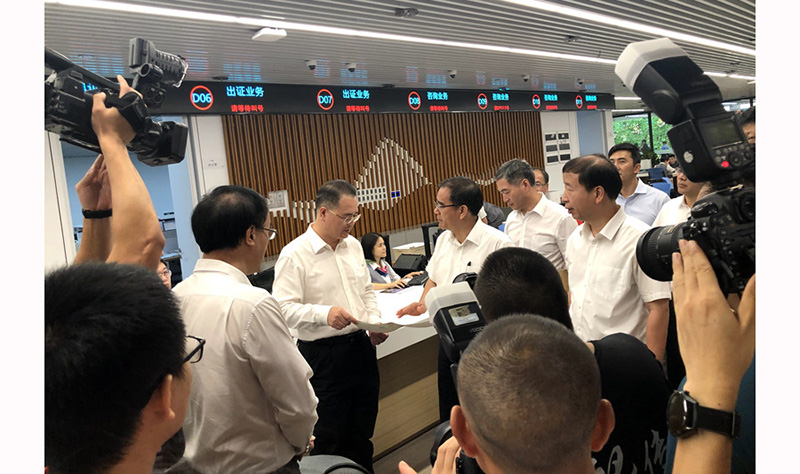 10月9日上午,東莞市民服務(wù)中心舉行試運行啟用儀式,市委書記梁維東、市長肖亞非到東莞市民服務(wù)中心巡館。在市委書記梁維東、市長肖亞非等市領(lǐng)導(dǎo)的共同見證下,公司董事長曾一平現(xiàn)場領(lǐng)到了由東莞市市場監(jiān)督管理局曹宇副局長頒發(fā)的營業(yè)執(zhí)照(巨正源氫能源科技有限公司)。這也是市市場監(jiān)督管理局在市民服務(wù)中心頒發(fā)的第一張企業(yè)證照。