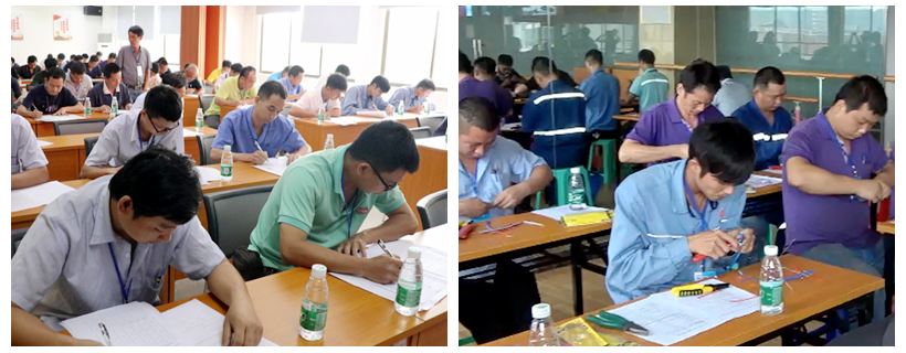 此次勞動競賽內容分理論知識和操作技能兩部分,其中理論知識部分采用閉卷筆試方式進行,操作技能部分采用現場操作方式進行。賽前,盛源石化公司的參賽員工積極備戰,在訓練中復習并提高電工理論與操作技能。比賽中,參賽員工沉著應對,操作規范,以扎實的理論知識和精湛的操作技能,在限定的時間內完成比賽要求。